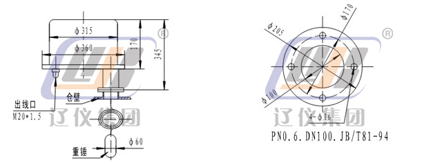 UL-3型物位開關(guān)采用擺復(fù)式傳動(dòng)系統(tǒng)。擺動(dòng)軸的軸端對(duì)稱掛有重錘及配重砣。無(wú)物料時(shí),重錘失重,彈簧拉力克服了配重砣的重力使軸靜止,電機(jī)使測(cè)量撥叉張開動(dòng)作,微動(dòng)開關(guān)動(dòng)作,發(fā)出料面信號(hào);若物料夾住重錘下行,亦可使拔叉張開動(dòng)作,發(fā)出料面信號(hào),同時(shí)限位座靠在底板上,限制重錘繼續(xù)下行,使儀表內(nèi)部免受沖擊及拉力,切斷電機(jī)電源。