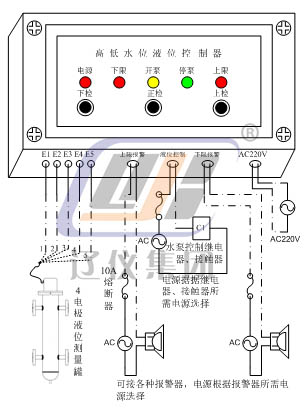 UDK-G3R-A1型水位控制器主要應(yīng)用于工業(yè)蒸汽鍋爐、熱水鍋爐、污水處理、浴池及樓房給排水等。具有應(yīng)用范圍廣、自控靈敏、抗干擾性強(qiáng)、體積小、價(jià)格低廉等特點(diǎn)。該控制器由水位檢測(cè)部分(電極、極筒)和水位控制部分組成,水位控制器是將導(dǎo)電介質(zhì)的液位信號(hào)轉(zhuǎn)換為四組開(kāi)關(guān)信號(hào),上下限報(bào)警,LED顯示及開(kāi)關(guān)輸出。